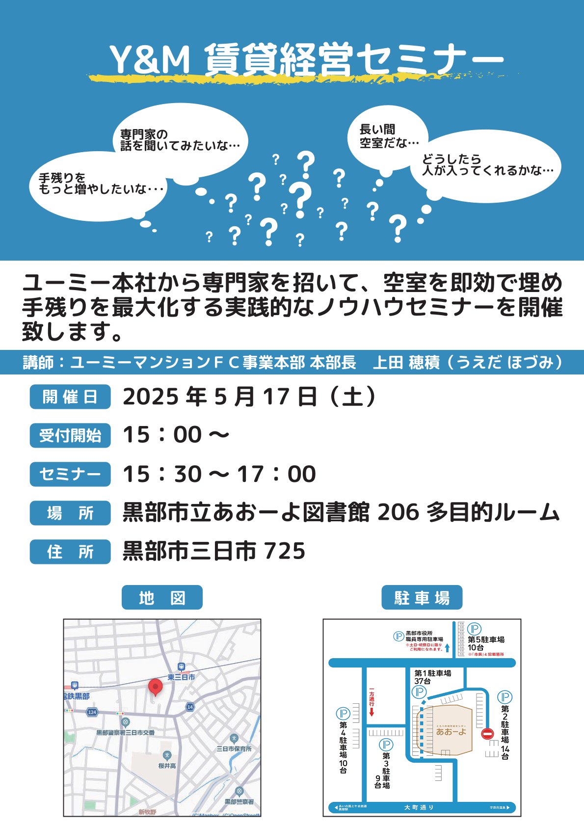 オーナ様向け賃貸経営セミナーを開催いたします。