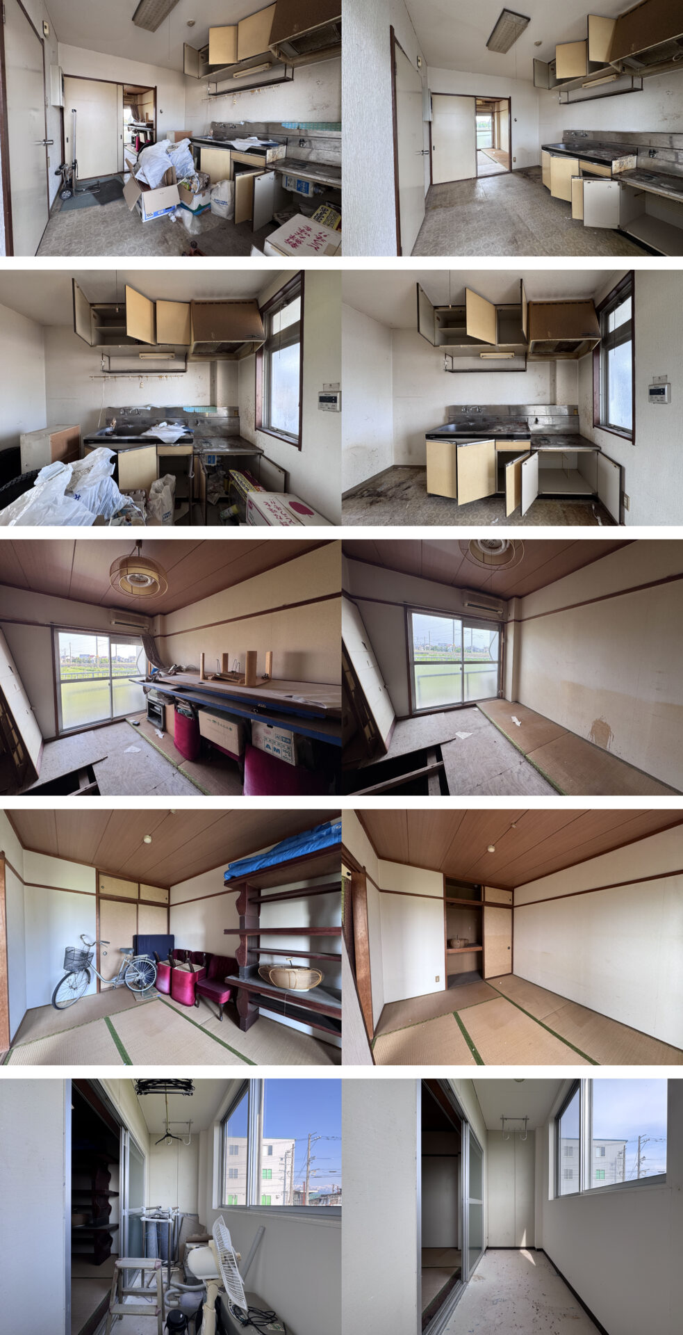 築40年のアパートの改修工事が進行中です。現在は、長年放置されていた家具や不用品の撤去作業が完了し、各部屋の原状が見えてきた段階です。本格的な内装工事に入る準備が整いました。 これから、壁紙の張り替えや設備の更新などを行います。進捗にご期待ください。